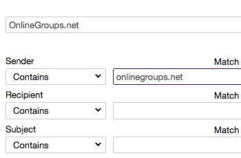 - Search for emails containing the domain you wish to whitelist (eg onlinegroups.net).